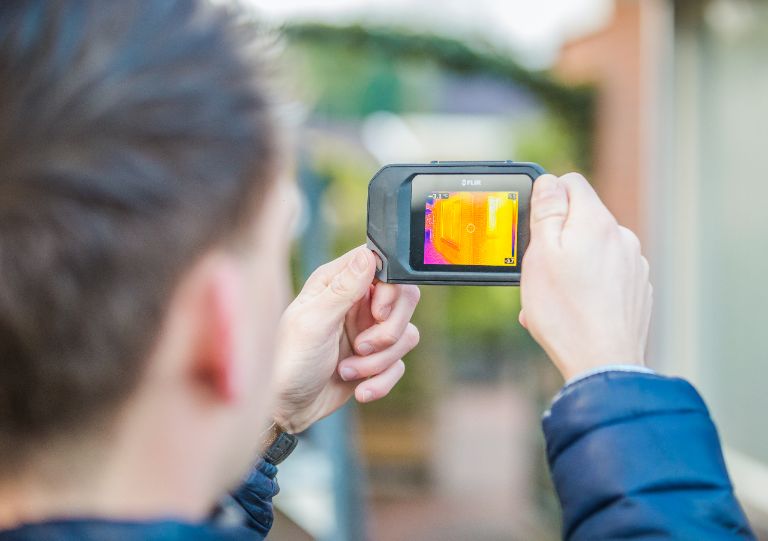 Bij vloer isolatie bepaalt hij de hoogte van de kruipruimte en de doorgangen naar de kruipruimte. Bij dak isolatie bekijkt hij de dak constructie en bij spouwmuur isolatie bekijkt hij via endoscopisch onderzoek de diepte van de spouw, of er al isolatie materiaal in de spouw aanwezig is en of dit materiaal nog voldoet aan de eisen. Ook zal hij de buitenzijde van de muur inspecteren op scheuren en de voegen op poreusheid.